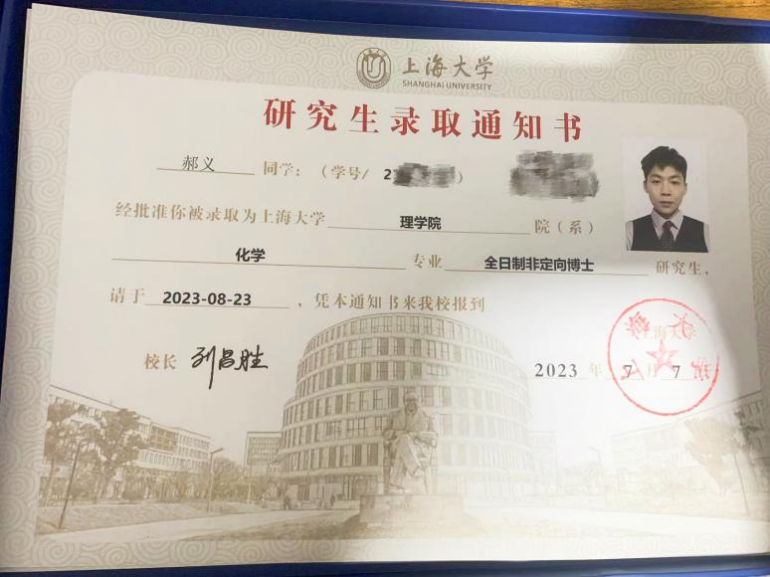 由财管专业跨到工科,是郝义校友人生第一次的大胆尝试。在硕士阶段,由于是跨专业,郝义校友几乎是从零学起,科研的压力让他夜不能寐,同时也很充实。从试剂的配置到材料的研发,从食品的加工保鲜到细菌的培养,再到抑菌抗菌机制的研究……三年的研究生生活,让郝义校友深深体会到“一分耕耘,一分收获”这个亘古不变的道理。如今,在郝义校友的博士课题又涉及到几个新方面,包括催化升级、新材料开发、经济核算和双碳等,压力在所难免,但他深知科研工作需要深厚的专业知识和持久的耐心,害怕是解决不了任何问题的。“车到山前必有路,船到桥头自然直”,这句话安慰过无数次在深夜emo的郝义校友。所以,大胆跨越,未必不可!在人生转折点,是选择继续读书搞科研还是就业,取决于个人的志向和追求,重要的是能够做出让自己满意的选择,并为之努力奋斗。