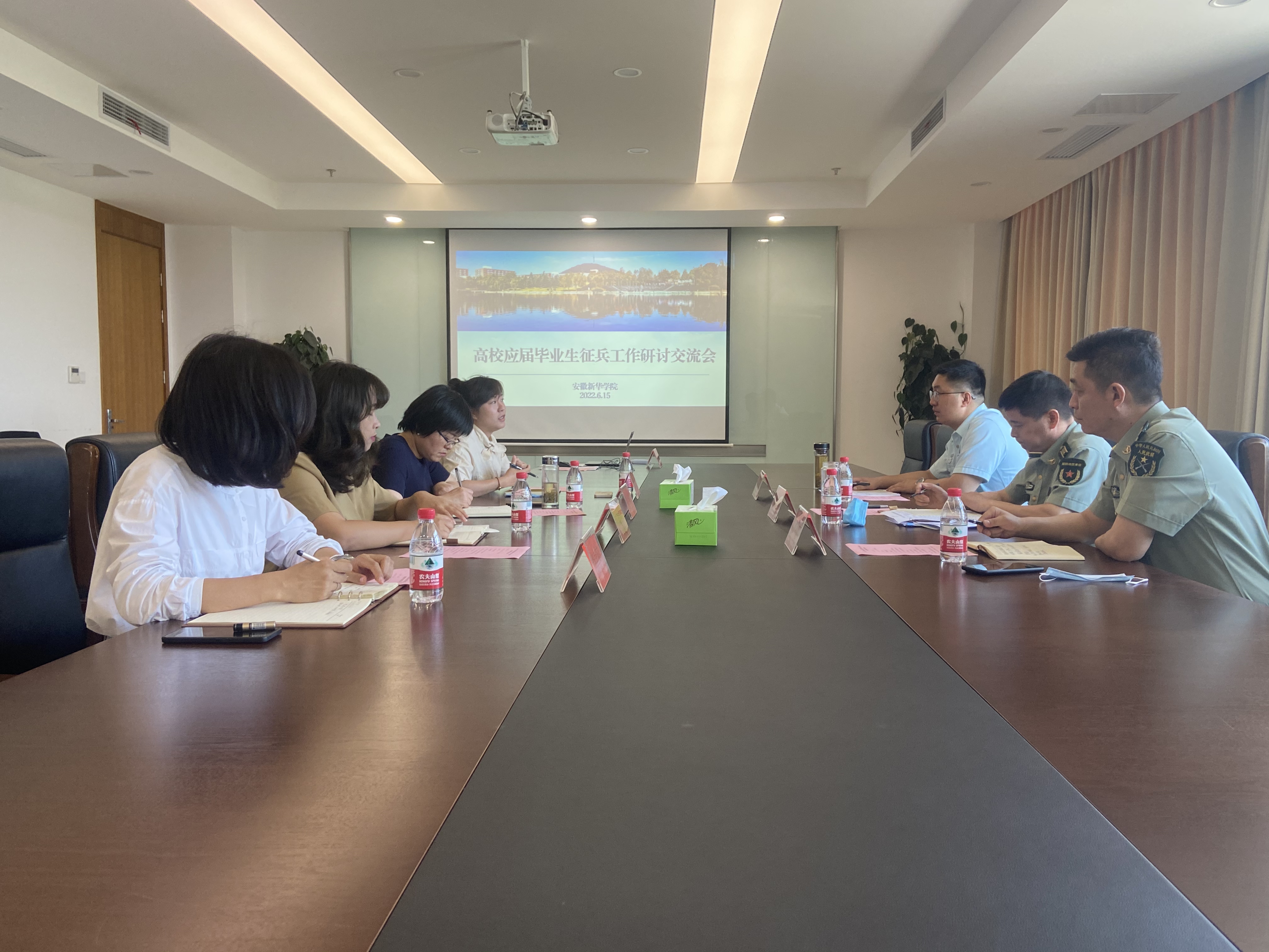 本网讯(通讯员:凌舒畅)6月15日,蜀山区人民武装部一行莅临我校调研征兵工作。校长助理邵玲,征兵工作站站长郑妮,大数据与人工智能学院院长助理魏高莉,征兵工作站相关工作人员参加座谈会。