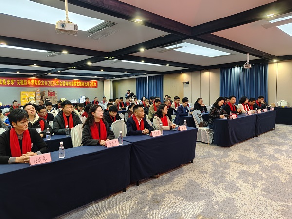 本网讯(通讯员:刘志豪)2月1日,校友会合肥分会2026年年会在合肥隆重举行。活动以“融合聚变,赋能未来”为主题,校友工作办公室、城市建设学院、药学院相关负责人与来自各行各业的百余名校友代表欢聚一堂,在温馨融洽的氛围中共忆同窗岁月、畅叙母校情谊、展望未来发展新篇。